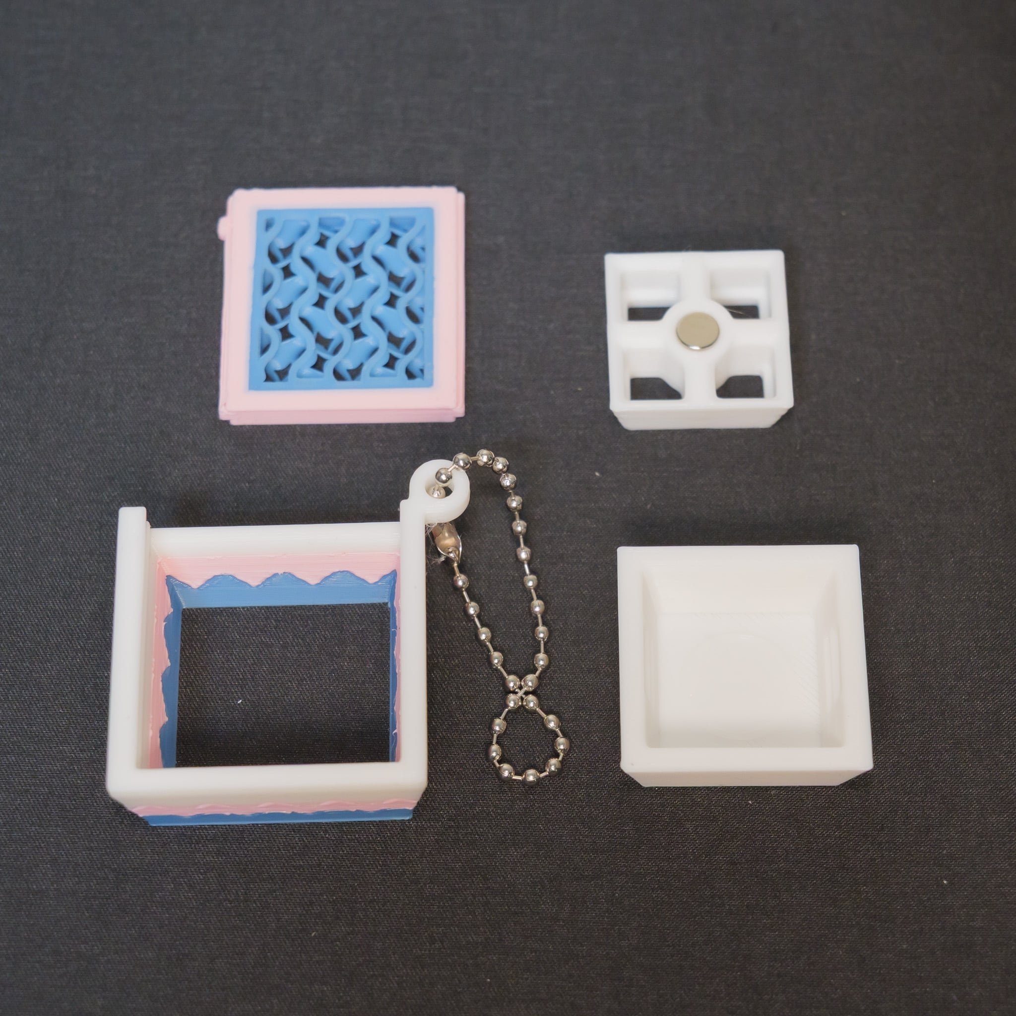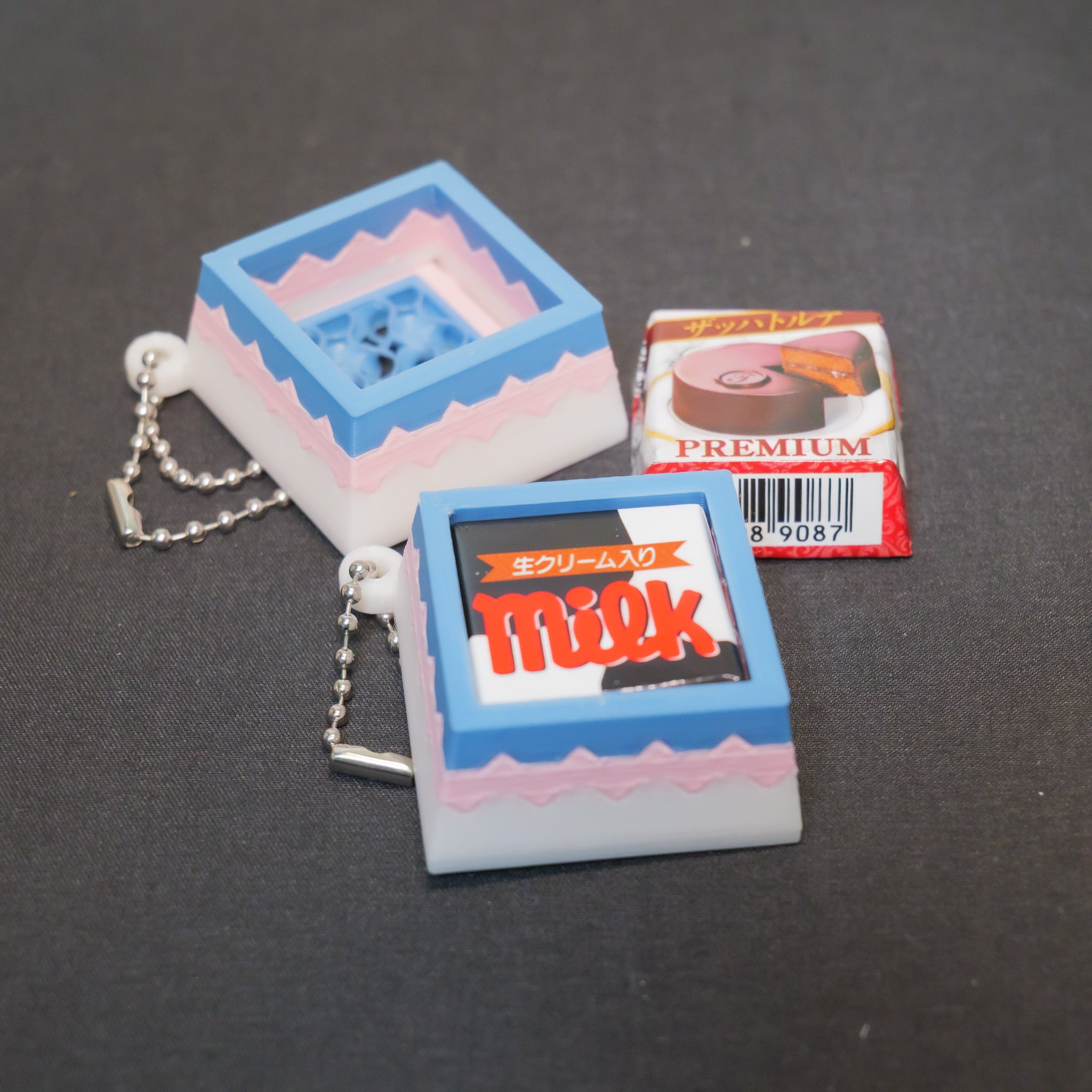 本ホルダーは、市販の2cm角チョコ(DECOチョコ等)を大切に保管し、キーホルダーとして楽しむための「個人制作の専用アクセサリー」です。